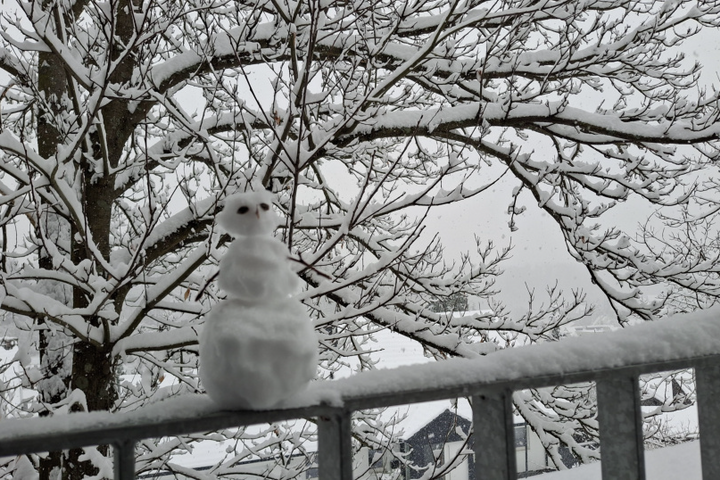 Was wohl das kleine Schneemännchen (oder -frauchen?) auf dem Roncalli-Balkon gerade so denkt ...?