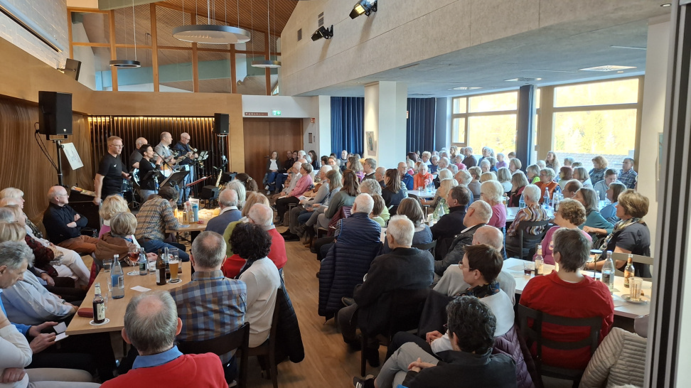 Eigentlich hatten die Musiker*innen von „Momentmal“ nur eine kleine Generalprobe für den Katholikentag im Mai im Sinn. Und nebenbei wollten sie gerne mal wieder im Roncalli spielen. Gewünscht, getan.